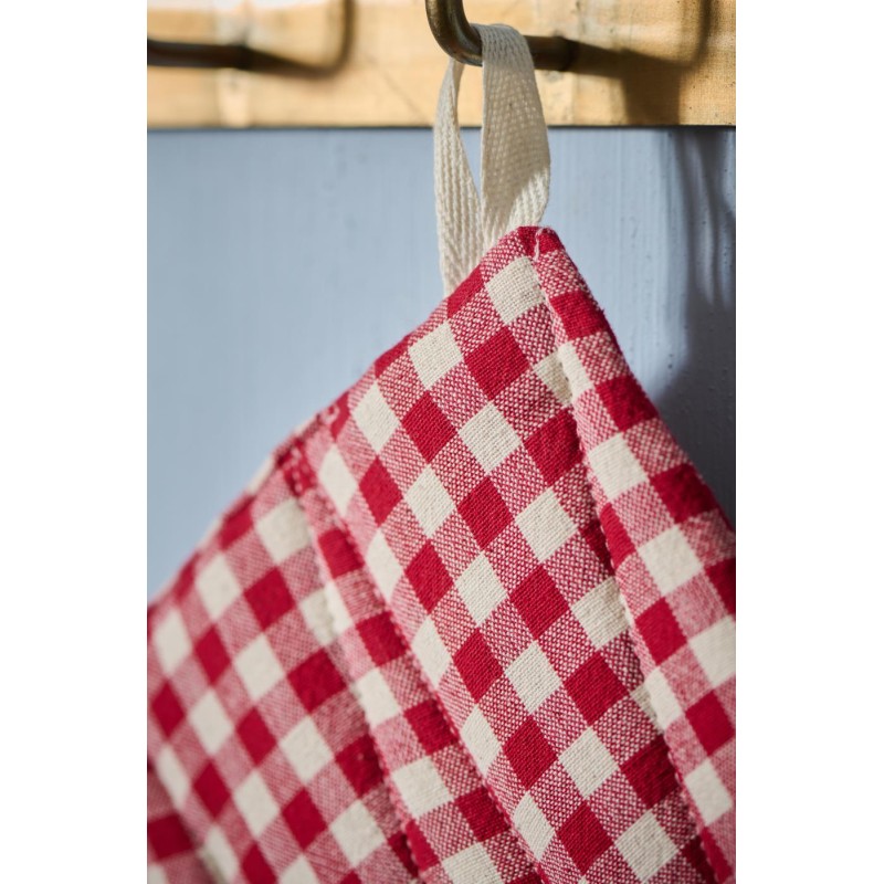 Gør madlavningen både sikker og hyggelig med grydelappen "Asta" fra Ib Laursen. Den røde grydelap med naturfarvede tern giver køkkenet et klassisk udtryk og beskytter effektivt mod varme. Fremstillet i blødt bomuld – praktisk i brug og samtidig en dekorativ detalje, der skaber charme i dit køkken.