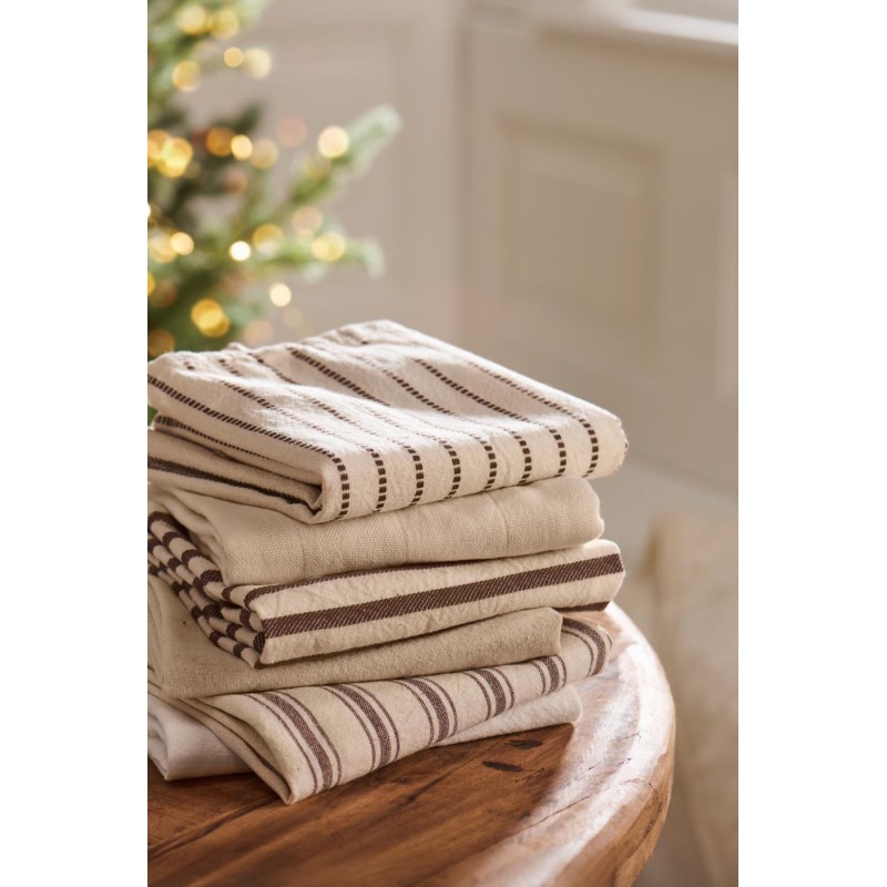 Viskestykket "Freddy" fra Ib Laursen kombinerer funktion og klassisk design. Det naturfarvede bomuldsviskestykke med fine brune vandrette striber giver køkkenet et rustikt og tidløst udtryk. Perfekt til daglig brug og som dekorativ detalje, der skaber varme og charme i køkkenet.
